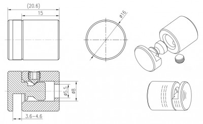 - Dotazione tecnica del kit di montaggio: 4 tasselli ad espansione con diametro foro 6 mm, lunghezza tassello 30 mm, vite 4-5 mm, profondità min. del foro 40 mm e spessore min. della lastra 12,5 mm; 4 supporti puntuali con diametro ø 16 mm e boccola distanziatrice L=15 mm.