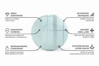 Piano tavolo rotondo in materiale trasparente. Questa lastra circolare in vetro temperato offre una superficie cristallina e nitida, con una trasparenza che esalta la leggerezza visiva del piano. La forma rotonda valorizza i contorni e invita al tatto grazie ai bordi levigati che risultano lisci al contatto. L'aspetto è essenziale e luminoso, la superficie liscia richiama una sensazione pulita e minimale mentre lo spessore discreto di 4 mm mantiene un profilo sottile e moderno.