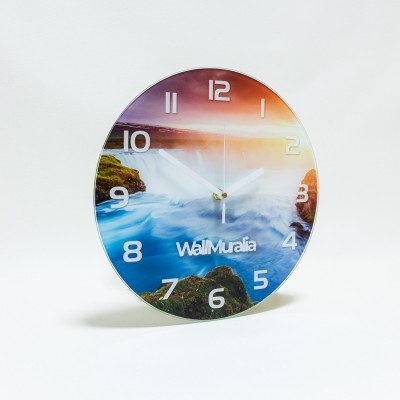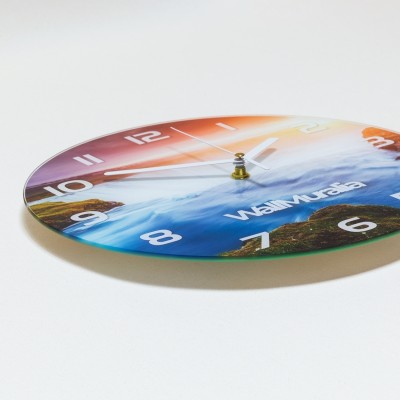 Orologio da parete rotondo con motivo 'Grotta sul mare' è un complemento che evoca la calma della costa: la superficie stampata richiama le sfumature del turchese e del blu profondo, tocchi sabbiosi e venature rocciose che suggeriscono una cavità marina illuminata. La forma circolare e la lastra in vetro temperato conferiscono un aspetto sobrio e lucente, mentre il motivo pittorico a tutta superficie crea una sensazione tattile visiva di profondità e movimento. Questo orologio rotondo bilancia estetica e funzionalità, introducendo un'atmosfera rilassata e leggermente mediterranea nella stanza.