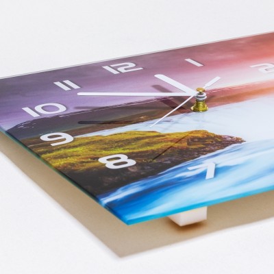 R: L'orologio è realizzato in vetro temperato con stampa al lattice ecologica su tutta la superficie. La stampa è ad alta risoluzione, resistente ai raggi UV e i colori sono durevoli, garantendo una lunga conservazione dell'aspetto.